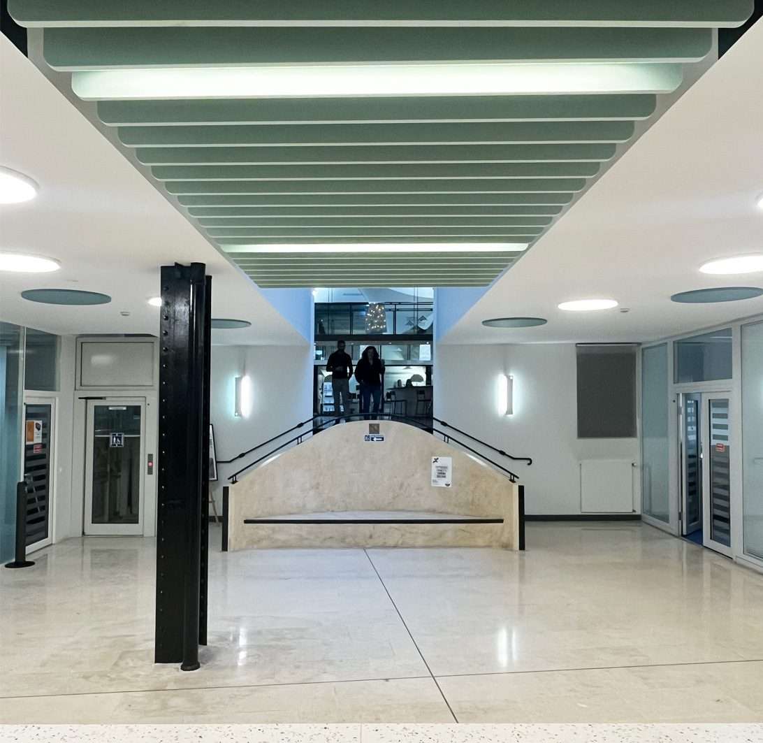 Conçu pour servir de lieu événementiel, de workcafé et d’espace de rencontre, cet aménagement reflète l’engagement de l’institution à offrir un environnement propice à la créativité, à la collaboration et aux échanges. Un design moderne au service de l’internationalisation et de la mobilité.